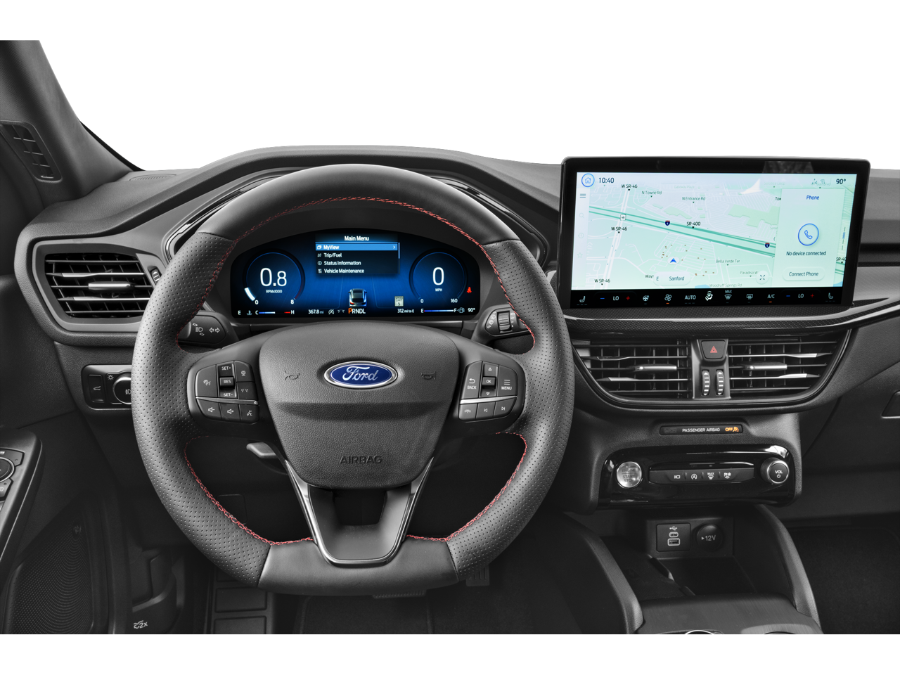 White Metallic 2026 Ford Escape Hybrid ST-Line Select AWD eCVT 2.5L iVCT 2.5L iVCT, 10-Way Power Driver's Seat, 12.3 Digital Productivity Screen in Instrument Panel Cluster, 2.91 Axle Ratio, 360-Degree Camera with Split View, 4-Way Manual Front Passenger Seat, 6-Way Power Front Passenger Seat, 8-Way Power Driver Seat, Adaptive Cruise Control with Stop-and-Go, B&O Sound System by Bang & Olufsen, Body Color Mirrors, Class II Trailer Tow Package, Connected Navigation (1-Year Included), Electronic Fuel Door Release, Equipment Group 400A, Evasive Steering Assist, Ford App, Ford Co-Pilot360 Assist 2.0, HD Radio, Intersection Assist, Memory Package, Neutral Towing Capability, Partial Vinyl/Cloth Heated Front Sport Contour Bucket Seats with Red Stitching, Pedestrian Alert Sounder, Predictive Speed Assist, Radio: AM/FM Stereo with SiriusXM 360L, Rear Parking Sensor, Reverse Brake Assist, SYNC 4, SYNC 4 with Enhanced Voice Recognition, Tech Pack #2, Wheels: 18 Rock Metallic Painted Aluminum, Wireless Charging Pad.