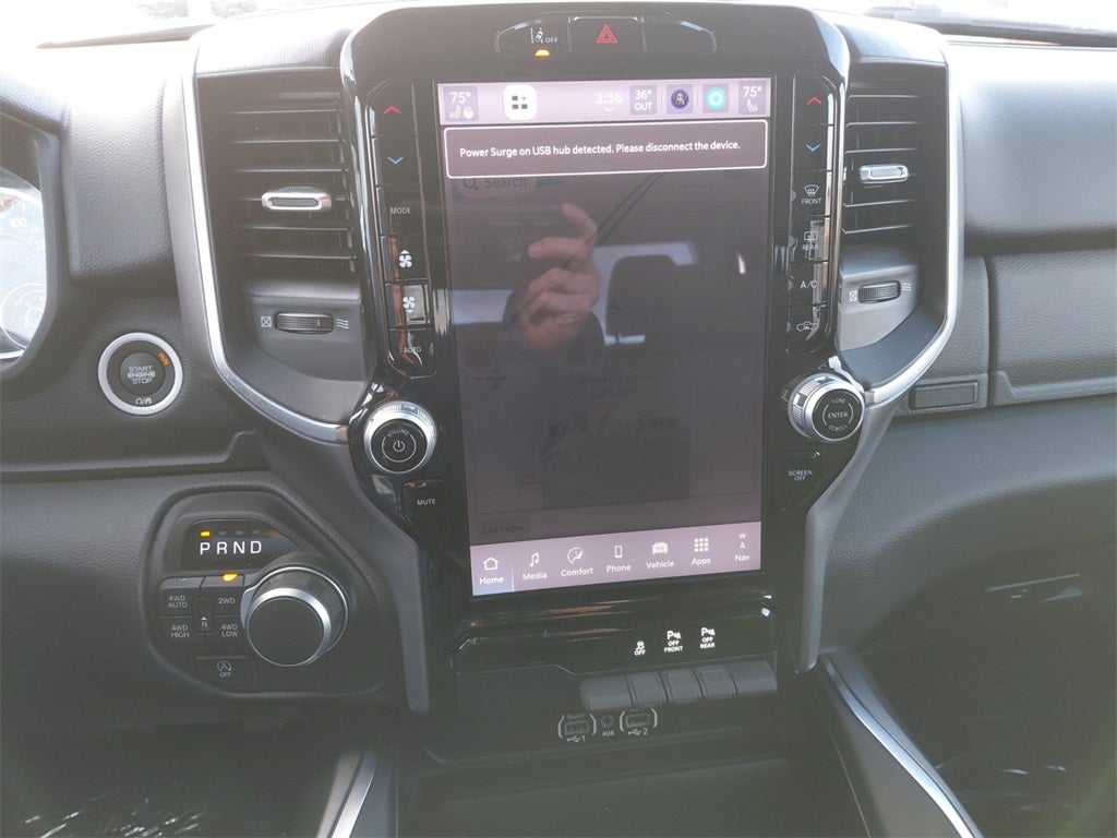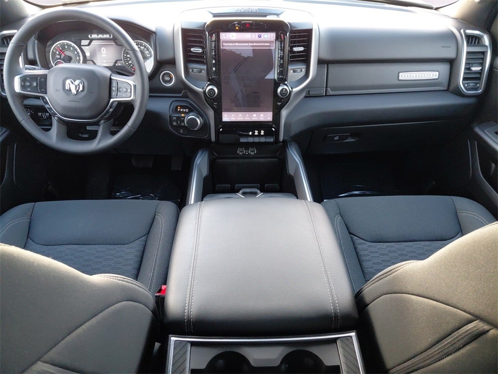 Diamond Black Crystal Pearlcoat 2025 Ram 1500 Big Horn/Lone Star 4WD 8-Speed Automatic 3.0L I6 115V Auxiliary Power Outlet, 115V Auxiliary Rear Power Outlet, 12 Touchscreen Display, 2nd Row In Floor Storage Bins, 3 Rear Seat Head Restraints, 4 Way Front Headrests, 400W Inverter, 4G LTE Wi-Fi Hot Spot, 9 Amplified Speakers w/Subwoofer, Accent Color Door Handles, Accent Color Premium Power Mirrors, Accent Color Tailgate Handle, Air Conditioning ATC w/Dual Zone Control, Anti-Spin Differential Rear Axle, Apple CarPlay, Auto Power-Folding Mirrors, Auto-Dimming Exterior Driver Mirror, Auto-Dimming Rear-View Mirror, Bed Utility Group, Big Horn Level 2 Equipment Group, Black Exterior Mirrors, Black Exterior Truck Badging, Black Headlamp Bezels, Black Interior Accents, Black Painted Exterior Mirrors Caps, Black Premium Power Mirrors, Black Tail Lamp Bezels, Body Color Front Bumper, Body Color Rear Bumper w/Step Pads, Bucket Seats, Cluster 7.0 TFT Color Display, Configurable Drive Mode, Connected Travel & Traffic Services, Connectivity - US/Canada, Convex Wide-Angle Exterior Mirror Insert, Deluxe Cloth Bucket Seats, Exterior 115V AC Outlet, Exterior Mirrors Courtesy Lamps, Exterior Mirrors w/Heating Element, Exterior Mirrors w/Supplemental Signals, Front Seat Back Map Pockets, Full Length Floor Console, Glove Box Lamp, Google Android Auto, GPS Antenna Input, GPS Navigation, Grille Black Surround Black Mesh, HD Radio, Heated Front Seats, Heated Steering Wheel, Integrated Voice Command w/Bluetooth®, Leather Wrapped Steering Wheel, LED Dome Lamp w/On/Off Switch, LED Footwell Lighting, Manual Adjust 4-Way Front Passenger Seat, Media Hub w/2 Charge Only USBs, MOPAR 4 Adjustable Cargo Tie-Down Hooks, MOPAR Spray In Bedliner, Night Edition, Overhead LED Lamps, Pick-Up Box Lighting, Power 2-Way Driver Lumbar Adjust, Power Adjust 8-Way Driver Seat, Power Adjustable Pedals, Premium Overhead Console, Quick Order Package 21Z Big Horn, Radio: Uconnect 5 Nav w/12.0 Display, RAM Grille Badge - Black, Rear 60/40 Folding Seat, Rear Center Armrest, Rear Power Sliding Window, Rear Window Defroster, Remote Tailgate Release, Security Alarm, SiriusXM w/360L, Steering Wheel Mounted Audio Controls, Sun Visors w/Illuminated Vanity Mirrors, Universal Garage Door Opener, USB Host Flip, Wheels: 20 x 9.0 Aluminum Painted Clad.